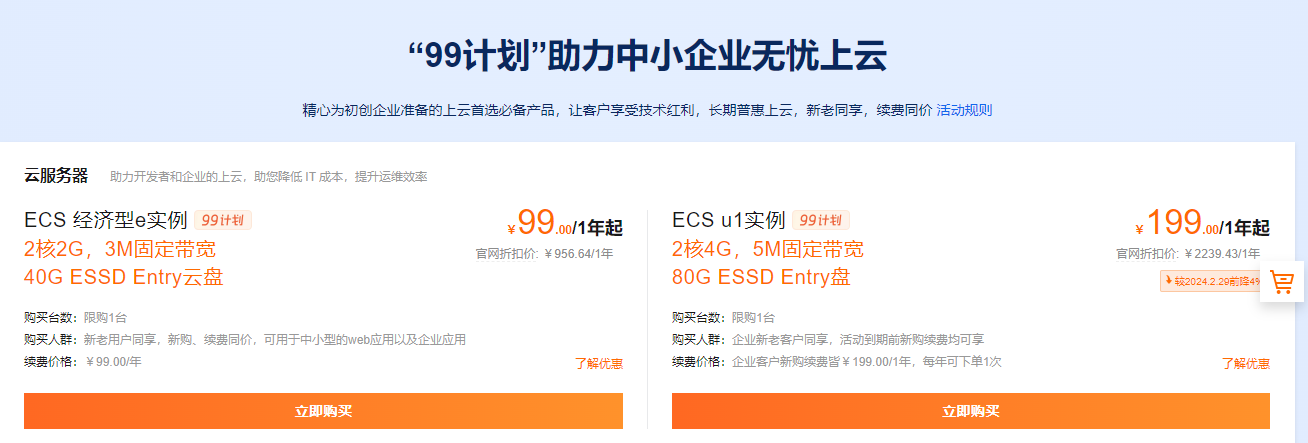 对于个人开发者、学生和小型项目来说,阿里云推出的99元1年2核2G3M的服务器是一个极具吸引力的选择。它不仅价格亲民,还提供了较为稳定的性能和良好的技术支持,非常适合用于学习实践、部署小型网站或进行初步的技术探索。